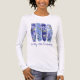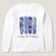 Four purple and blue vertical brush strokes create a vibrant frame for blue and white larkspur flowers. Larkspur also known as delphinium is the July Birth Month Flower. Brush strokes are one of the hottest trends in pattern design this summer. One line of text lets you customise your t-shirt. In this case, it is meant for the birthday celebrant to wear at their party.
