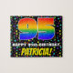 This vibrant and upbeat birthday jigsaw puzzle design features a large number “95” with a multicolored rainbow spectrum inspired gradient pattern, along with the message “HAPPY 95th BIRTHDAY,”, and a customisable recipient name. The background has a cheerful, multicolored pattern featuring star shapes of various sizes. A fun, customised birthday puzzle like this might be a fun way to deliver birthday greetings to somebody who is celebrating their ninety-fifth birthday. [~Z0000607]