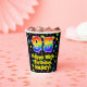This joyful and exciting birthday paper cup design features a large number “95” having a rainbow spectrum gradient inspired pattern. It also features the message “Happy 95th Birthday,”, and a customisable name. The background features a multicolored star field inspired pattern. Colourful, vibrant paper cups like this might be fun to have at a birthday party being held to celebrate somebody’s ninety fifth birthday. [~Z0000540]