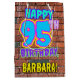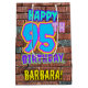 The front of this fun birthday themed gift bag design features the message “HAPPY 95TH BIRTHDAY,” having a colourful, vibrant, graffiti-inspired appearance, plus a personalised recipient name. The background features a pattern inspired by the look of a brick wall. A colourful birthday themed gift bag like this might be a fun way to wrap a gift or present being given to celebrate somebody’s ninety fifth birthday. [~Z0000536]
