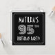 The front of this luxurious ninety-fifth birthday party/celebration invitation card design features a personalised name, an intricate art deco style inspired number “95th”, the message “BIRTHDAY PARTY!”, and a border pattern consisting of lines. The front also features a black-coloured background by default, but it can be customised to a different colour if desired. The back features personalised details about the event, such as the date, time, location/venue, and any other information that may be relevant. Stylish, elegant, personalised invitations like these might be used to invite guests to a birthday party being held to celebrate somebody’s 95th birthday. [~Z0000615]