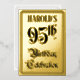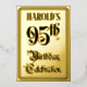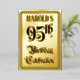The front of this fancy and opulent ninety-fifth birthday party/celebration foil announcement card design features the message “95th Birthday Celebration” in ornate script-style text. It also has a personalised name. The back features personalised details about the event, such as the date, time, venue/place, and any other useful information. Elaborate, elegant, personalised invitations like these might be used to invite guests to a birthday party being held to celebrate somebody’s ninety-fifth birthday. [~Z0000596]