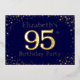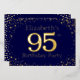95th birthday party invitation.  Personalise with the name of the person of honour. The number 95 in large sparkle style font. Framed in falling golden dots. Set on a very saturated dark cold blue. Enter the party details on the back of the invitation using the templates, also sent on dark blue framed in diamonds.