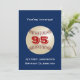 A baseball on a dark blue background decorates this unique and fun 95th Birthday Celebration Invitation. The reverse has white lettering on a red background. You can easily change the text for name, age, event, date, etc. Sports fans will love it! All Rights Reserved © 2014 Alan & Marcia Socolik.