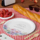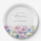 Perfect table decor for a September birthday party. Aster is the birth flower for that month. It forms a pretty watercolor bottom border on this floral personalised paper plate. The birthday guest of honour's name, age and birthdate are placed above it using elegant calligraphy and typography. All text is editable.
