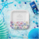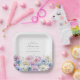 Perfect table decor for a September birthday party. Aster is the birth flower for that month. It forms a pretty watercolor bottom border on this floral personalised paper plate. The birthday guest of honour's name, age and birthdate are placed above it using elegant calligraphy and typography. All text is editable.