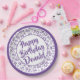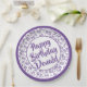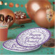 This over-the-hill design has a purple and white random number pattern with a purple milestone number 95 repeated in varied sizes and angles. There is a white circle in the centre for your text and purple-and-white rings around the rim.