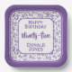 This unique numeric design features a purple and white random number pattern with the milestone number 95 displayed in various sizes and angles. A white rounded square serves as the centre for your text, surrounded by a coral and white frame.