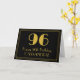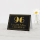 This 1920s-1930s style inspired and vintage style birthday themed greeting card design features a large art deco look inspired number "96", the message "Happy 96th Birthday,", an editable name, and a border pattern consisting of thin lines on the front. The background of the front is colored black. The inside has a custom birthday greeting message, or could perhaps be cleared and left blank if a message is to be written by hand instead. A personalized birthday greeting card like this might be used to celebrate somebody’s ninety-sixth birthday. [~Z0000463]