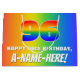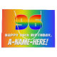 This joyful and fun birthday-themed gift bag design features a large number “96” with a colourful rainbow spectrum inspired gradient pattern, along with the message “HAPPY 96th BIRTHDAY,”, and a personalised recipient name. The background also features an exciting multicolored rainbow spectrum inspired gradient pattern. Personalised gift bags like this might be used when giving gifts or presents in honour of somebody’s 96th birthday. [~Z0000577]