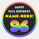 96th Birthday: Colourful Rainbow # 96, Custom Name Classic Round Sticker