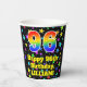 This fun and colourful birthday-themed paper cup design features a large number “96” having a rainbow spectrum gradient inspired pattern. It also features the message “Happy 96th Birthday,”, and an editable name. The background features a vibrant and colourful pattern featuring many star shapes with different colours and sizes. Colourful, vibrant paper cups like this might be fun to have at a birthday party/celebration being held to celebrate somebody’s 96th birthday. [~Z0000540]