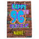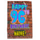 The front of this fun birthday-themed gift bag design features the message “HAPPY 96TH BIRTHDAY,” having a vibrant, colourful, graffiti-inspired look, along with an editable recipient name. The background features a pattern inspired by the look of a brick wall. A vibrant giftbag like this might be used when wrapping presents being given to somebody in celebration of their ninety sixth birthday. [~Z0000536]