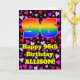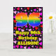 The front of this fun and happy birthday-themed greeting card design features a large number “96” having a rainbow spectrum gradient inspired pattern. It also features the message “Happy 96th Birthday,”, and a customizable name. The background of the front features a pattern of pink, red, and purple heart shapes of various sizes. The inside has a customized birthday greeting message, or could perhaps be cleared and left blank if a message is to be written by hand instead. A fun, customized birthday greeting card like this might be a fun way to send a birthday greeting message to somebody who is celebrating their ninety-sixth birthday. [~Z0000551]
