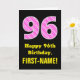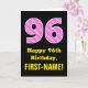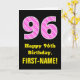 96th Birthday: Pink Stripes and Hearts "96" + Name Card