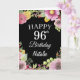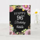 96th Birthday Watercolor Floral Flowers Black Card with personalised name and age. For further customisation, please click the "Customise it" button and use our design tool to modify this template.