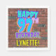 This fun birthday paper napkin design features the message “HAPPY 97TH BIRTHDAY,” having a colourful, vibrant, graffiti and urban street art inspired appearance, in addition to a personalised recipient name. The background features a pattern inspired by the look of a brick wall. Birthday themed paper napkins like this might be used at a party celebrating somebody’s ninety seventh birthday. [~Z0000534]