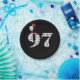 Red, white and black party balloon bouquet on black background for 97th birthday.