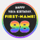 98th Birthday: Colourful Rainbow # 98, Custom Name Classic Round Sticker