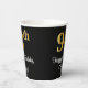This luxurious, elegant, and stylish birthday-themed paper cup design features a large ordinal number “98th” having a faux/imitation gold-inspired gradient pattern, in addition to the birthday greeting message “Happy 98th Birthday,” and an editable name in a script-style font. The background is coloured black. Paper cups like this might be use at a birthday party for somebody who is celebrating their ninety eighth birthday. [~Z0000538]