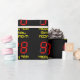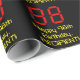 This fun and silly birthday-themed wrapping paper design features a large number "98" having a red seven segment digital display inspired appearance, along with the message "Happy 98th Birthday," and a custom name in geeky computing-inspired yellow text, on a black coloured background. Wrapping paper like this might be used when giving a gift or present in honour of somebody’s 98th birthday. [~Z0000387]