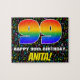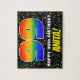 This joyful and colourful birthday jigsaw puzzle design features a large number “99” with a multicolored rainbow spectrum inspired gradient pattern, along with the message “HAPPY 99th BIRTHDAY,”, and an editable recipient name. The background features an upbeat pattern of music notes having a variety of colours and sizes. An eye-catching, personalised birthday puzzle like this might be given to celebrate somebody’s ninety-ninth birthday. These might be extra special if that person is a musician, a singer, a composer, a songwriter, or appreciates music. [~Z0000608]