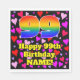 This joyful and fun birthday themed paper napkin design features a large number “99” with a rainbow spectrum gradient inspired pattern, along with the message “Happy 99th Birthday,”, and an editable name. The background features a pattern of red, pink, and purple heart shapes. Friendly, loving paper napkins like this might be fun to have at a birthday celebration being held in celebration of somebody’s ninety ninth birthday. [~Z0000550]