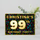 The front of this fun ninety-ninth birthday party foil invitation card design features an editable name, a large number “99th”, the message “BIRTHDAY PARTY!”, and a border. The background of the front features an eye-catching, colourful pattern of music notes and symbols. The back features personalised details about the event, such as the date, time, venue/place, and any other information that may be useful. Personalised invitations like these might be a fun way to invite attendees to a birthday gathering/party being held in celebration of somebody’s 99th birthday. These might be more meaningful for a music-themed birthday party. [~Z0000601]