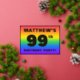 The front of this fun and exciting ninety-ninth birthday celebration foil invitation card design features a customisable name, a large number “99th”, the message “BIRTHDAY PARTY!”, and a border. The background of the front has a joyful, multicolored, rainbow spectrum inspired gradient pattern. The back features personalised details about the event, such as the date, time, location/venue, and any other relevant information. Customisable invitations like these might be a fun way to invite attendees to a birthday gathering/party being held to honour somebody’s 99th birthday. [~Z0000599]