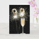 Party sparklers with gold confetti and white wine in stemware on black for 99th birthday.