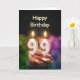 A birthday cup-cake with candles. The candles are made up of the number 99, for a 99th birthday. A birthday card suitable for everybody.
