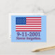 Remember September 11. This beautiful design features the American flag and text that reads 9-11-2001 Never Forgotten. Because we as Americans will never forget the attacks on the World Trade Centre, the Pentagon, and the people of the United States. Commemorate the event with a sombre, patriotic memorial.