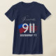Contemporary design in honour of the 10th Anniversary of the terror attacks on September 11th. Patriotic remembrance t-shirts with American flag waving behind the Twin Towers. Patriotic 10th Anniversary -- 9/11 remembrance gifts, t-shirts, apparel, buttons, hats, magnets, and commemorative keepsakes and souvenirs.