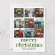 9 Photo Collage Merry Christmas green candy stripe Holiday Card