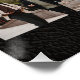 Modern stylish elegant graduate's name, class of year, and school personalised graduation congratulations keepsake printable poster featuring a faux metallic gold copper graduation cap topper, and 9 custom photos over a black leather like (PRINTED TEXTURE) background. Digital download available