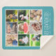 9 Photo Collage with Grandkids Names | Turquoise Sherpa Blanket