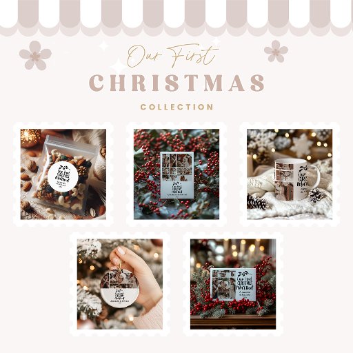 9 Photo Minimialist Our First Christmas Married Holiday Card