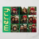 9 Photo Offset - Bold Merry - Green and Gold - Foil Holiday Postcard
