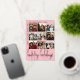 A collage of 9 photos in a simple grid to highlight many pic from the past year. The photo grid is off centre with the family names surrounding the collage as a border. A modern look for a holiday photo card with a rose gold border and "Happy Holidays" in a funky handwritten script font. The background is white.