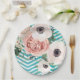 9" Round Paper Plate Geometric Rose Chevron Teal
