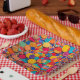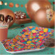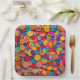 Colorful circular shapes cover this 9" square paper plate. This unique design will add color and vibrancy to your party decor!