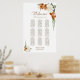 Help your guests find their table with this burnt orange and white rose floral wedding seating chart. It is suitable for a wedding with 9 tables and 90 guests.