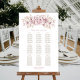 Help your guests find their table with this pink floral wedding seating chart. It is suitable for a wedding with 9 tables and 90 guests.