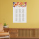 Help your guests find their table with this vibrant spring floral seating chart. It is suitable for a wedding with 9 tables and 90 guests.