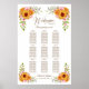 This sunflower and rose floral seating chart will help your guests find their table. It is suitable for a wedding with 9 tables and up to 90 guests.