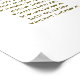 This beautiful 9 table wedding seating chart includes table assignments for 90 guests, with 10 people at each table. The design is simple yet elegant with gold text on a white background and features lacy gold faux foil frills in the corners and a fancy script calligraphy title reading "please find your table." Sophisticated and chic.