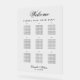 A simple but elegant transparent seating chart with 9 tables in 3 rows and 3 columns, recommended for a minimalist wedding. The title "Welcome" above and the names of the bride and groom below are written in an elegant calligraphy, the rest in caps. All text is black.