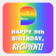 This cheerful and fun birthday square sticker design features a large number “9” having a colourful rainbow spectrum inspired gradient pattern. It also features the message “HAPPY 9th BIRTHDAY,”, and a personalised recipient name. The background also features a joyful multicolored rainbow spectrum inspired gradient pattern. Fun, exciting, personalised stickers like this might be given as a birthday present, or used while wrapping presents, or perhaps used as a birthday party decoration when celebrating somebody’s 9th birthday. [~Z0000571]
