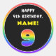 9th Birthday: Colourful Rainbow # 9, Custom Name Classic Round Sticker