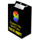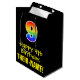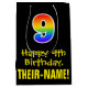 This colourful, exciting, and fun birthday themed gift bag design features a large number "9" with a rainbow spectrum gradient inspired pattern, along with the message "Happy 9th Birthday,", and a custom recipient name. The background is coloured black. A birthday themed gift bag like this might be a fun way to wrap a gift or present being given to somebody who is celebrating their 9th birthday. [~Z0000512]